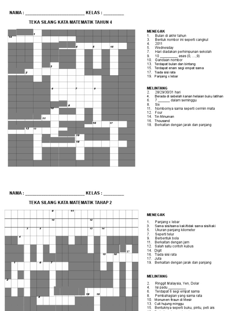 Contoh Teka Silang Kata Matematik Tahun 4 Yang Sangat Hebat Untuk Guru Guru Perolehi Skoloh